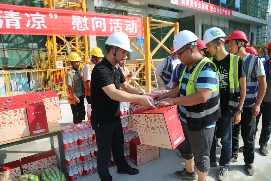 集团党委班子成员分别走访慰问了清江锦城项目、江南在线客服正荣府项目、江南在线客服龙湖天曜项目以及荆州学府花园项目,实地察看了项目施工现场,询问了解了项目安全生产、劳动保护及防暑降温工作情况,积极协调解决职工暑期生产生活方面的困难和问题,为项目一线职工送去西瓜、矿泉水、清凉礼包等防暑降温物品,叮嘱他们在做好本职工作的同时,注意高温酷暑下的自我保护,把健康和安全生产放在第一位,以良好的精神状态投入到工作中。