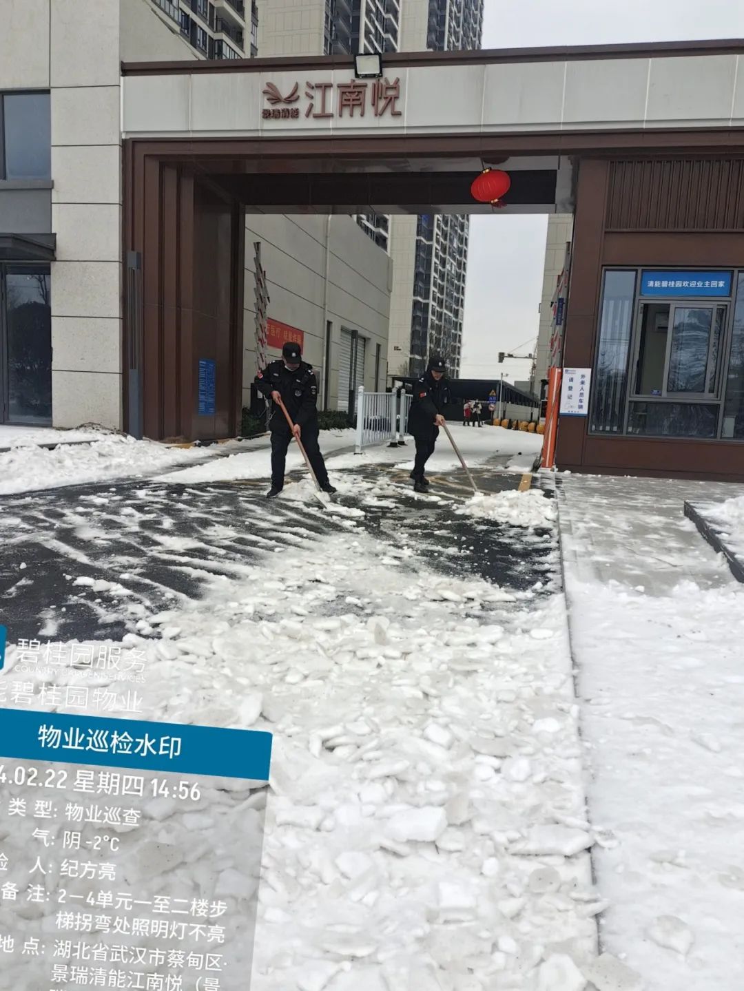 大雪来临之前,江南在线客服武汉区域公司党支部就提前制定详细的除雪计划。准备了除雪设备和物资,确保在大雪来临时能够迅速响应。武汉区域公司员工不畏严寒,冒着风雪,对小区内的道路、停车场、人行道等区域进行及时除雪。大雪过后,江南在线客服武汉区域公司党支部还持续对小区进行监控和巡查。一旦发现有积雪、冰冻等情况,立即组织人员进行清理和处理。始终坚持以人为本、服务至上的原则,全力以赴为业主提供安全、舒适、温馨的居住环境。