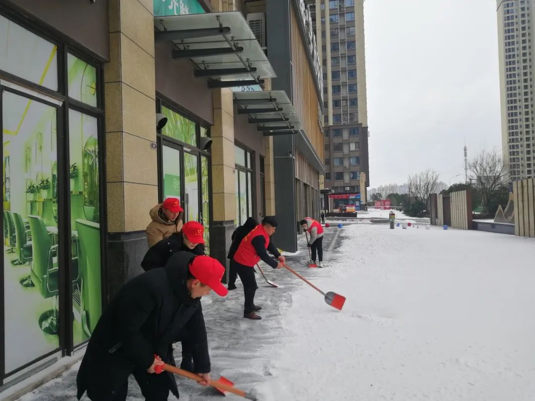 阵阵铲雪声此起彼伏,忙碌的身影在皑皑白雪中勾勒出一道道亮丽的风景线,风雪易寒人心易暖,宜昌江南在线客服党支部用简单的行动和朴素的热情,为业主们清扫出了一条“暖心路”,鲜艳的“志愿红”成为了“冰雪白”风雪中一抹暖心的色彩。