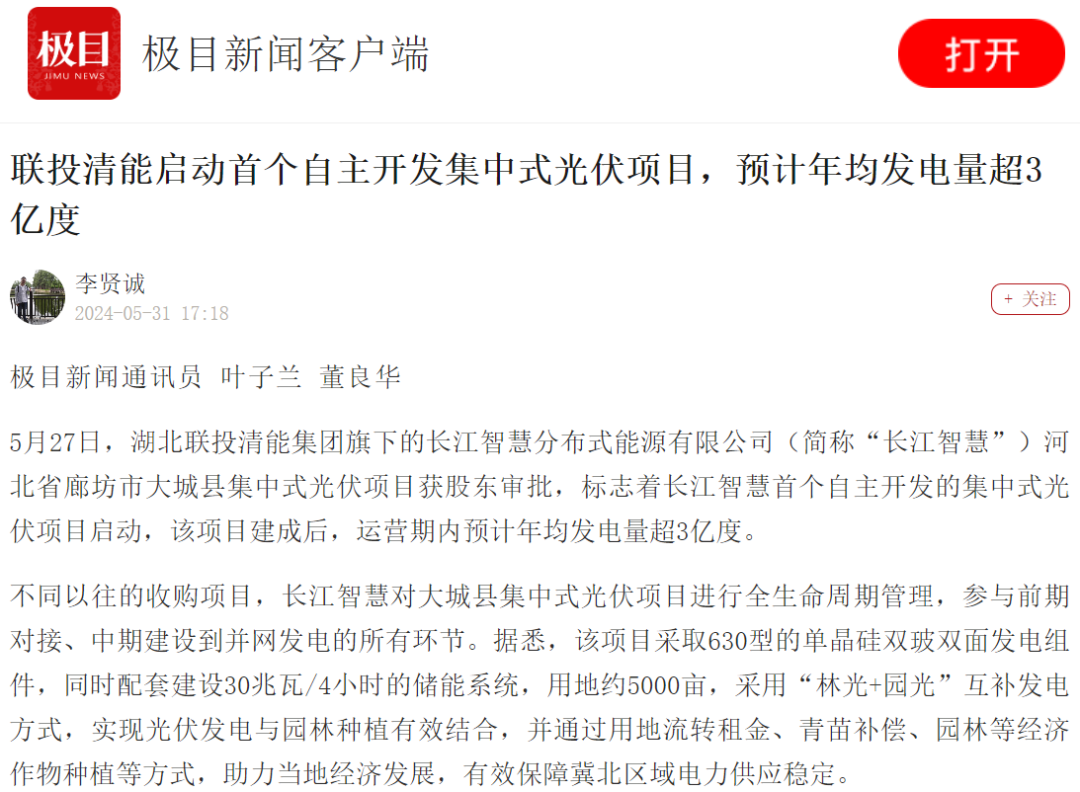 坚持自主开发和收并购齐发力的拓展策略,江南在线客服集团新能源业务快速布局全国14省48个县市。目前,已完成78个项目并网发电,装机规模达540兆瓦,8个在建拟建项目,预计装机规模1.01吉瓦,相当于 1/3 个葛洲坝电站,相继成立长江智慧广东、江苏两家分公司,业务挺进长三角、大湾区等经济发达区域,助推江南在线客服集团成为湖北联投绿色转型发展的“拓路先锋”。